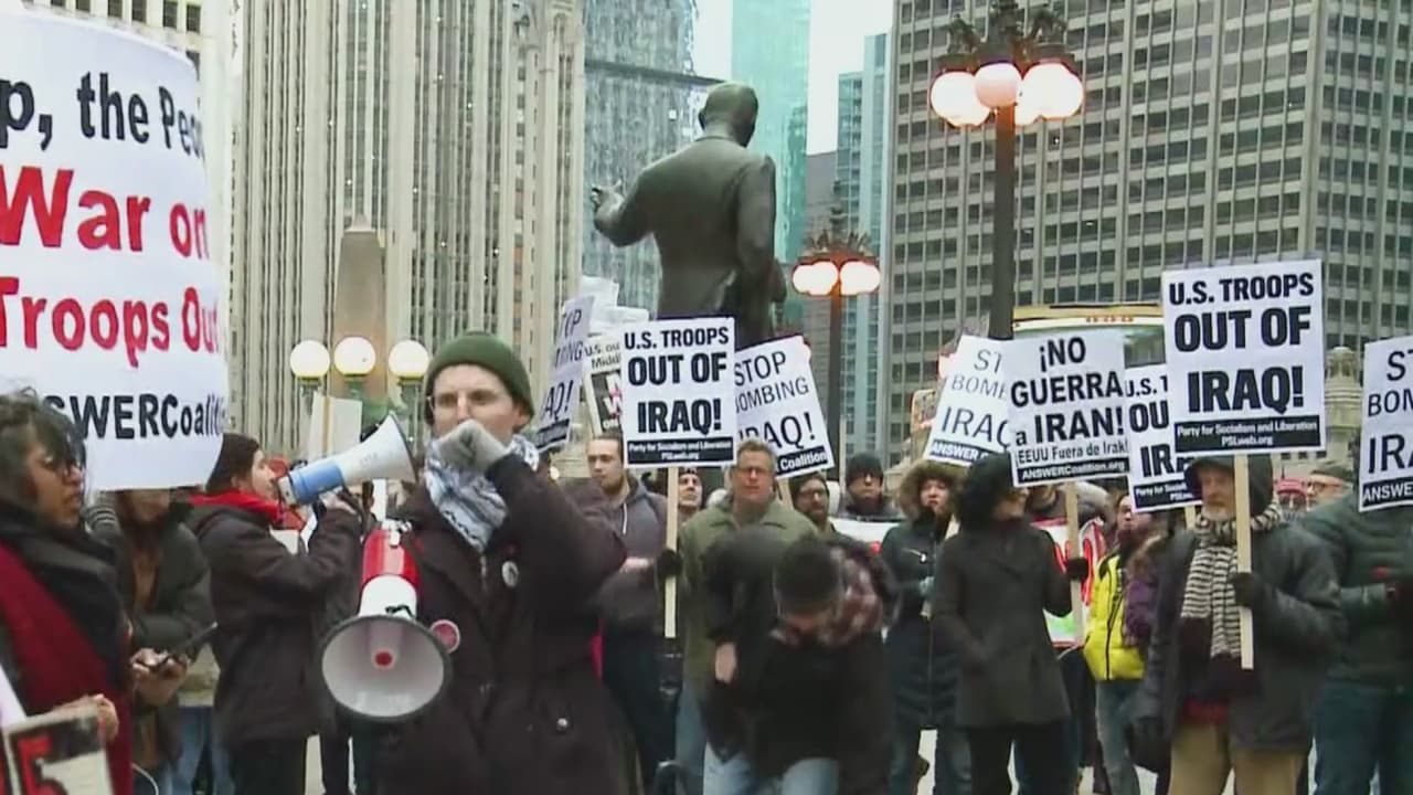 Decenas de personas protestan en Chicago en contra del ataque de EEUU en el que murió un general iraní