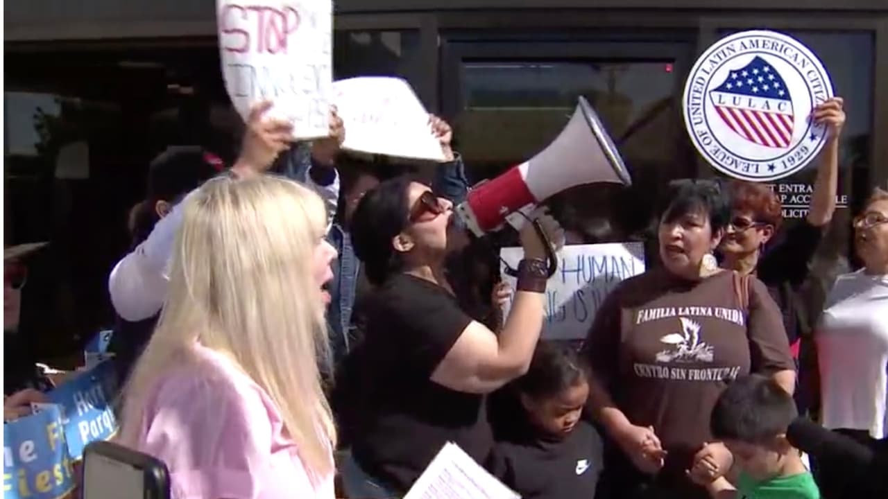 Durante la protesta se escuchaba a manifestantes gritar "¡Qué vergüenza!" y “Nuestras familias merecen estar unidas”, mientras algunos cargaban pancartas donde se leía "Ningún ser humano es ilegal".