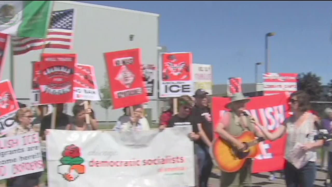 Activistas alegan que las deportaciones desde esta terminal aérea se han incrementado desde la administración Trump. Los manifestantes también piden la eliminación de ICE.