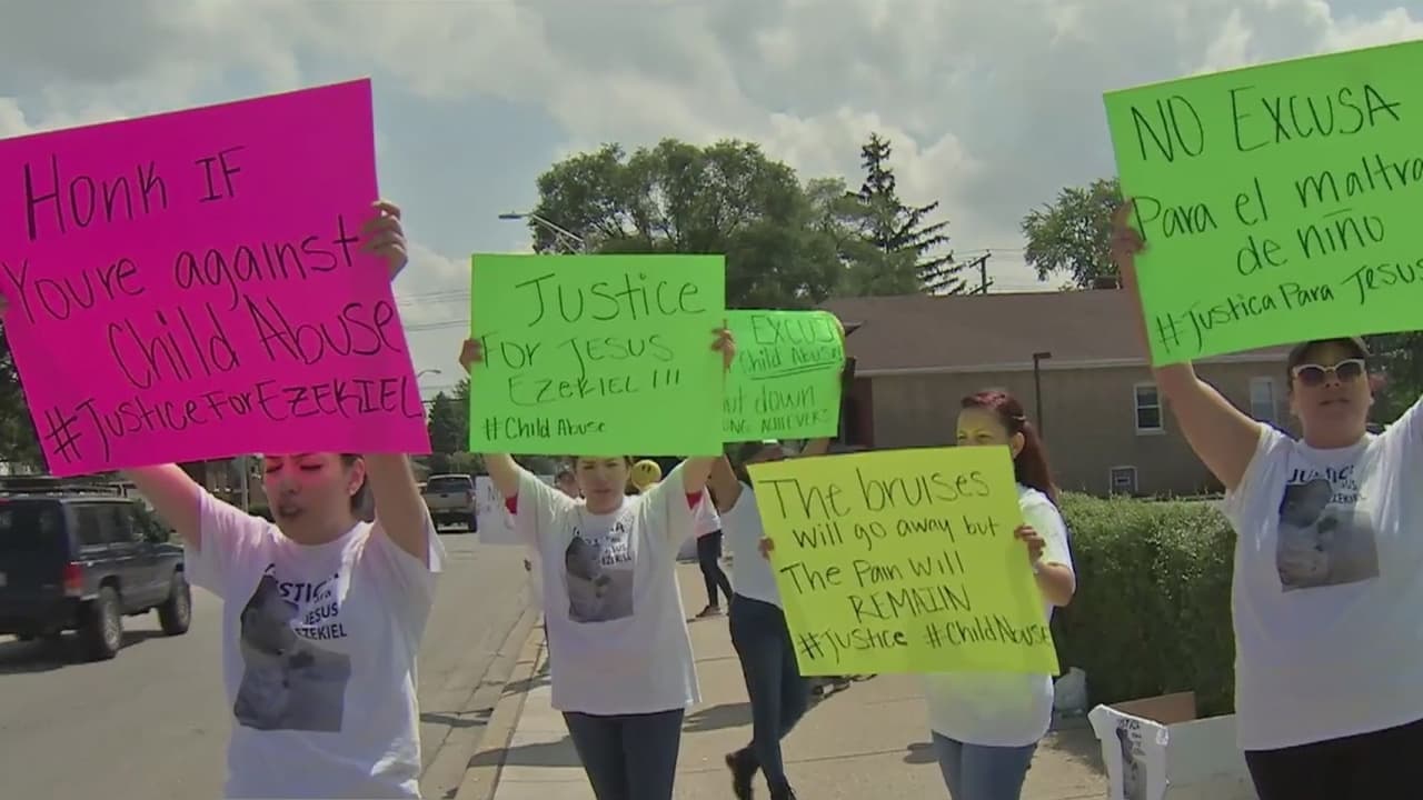 Un grupo de madres y familiares de Jesús Ezequiel, un niño que sufrió varias mordeduras en una guardería en el suburbio de Franklin Park, se reunieron este miércoles frente al Young Achiever's Learning Center para protestar por el incidente.