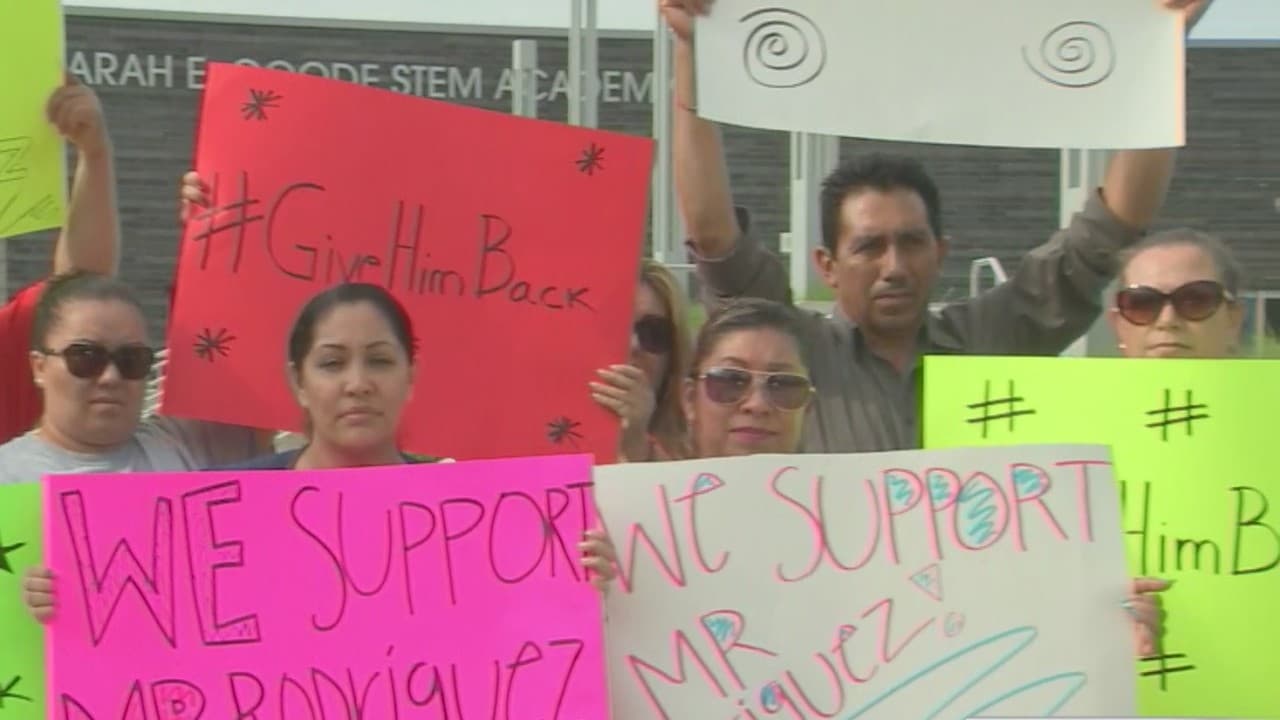 El director Armando Rodríguez fue removido de la escuela Sarah E. Goode tras estar casi cuatro años en su cargo. Los padres de los estudiantes del plantel mostraron su apoyo con el directivo y pidieron que se le devuelva el puesto.
