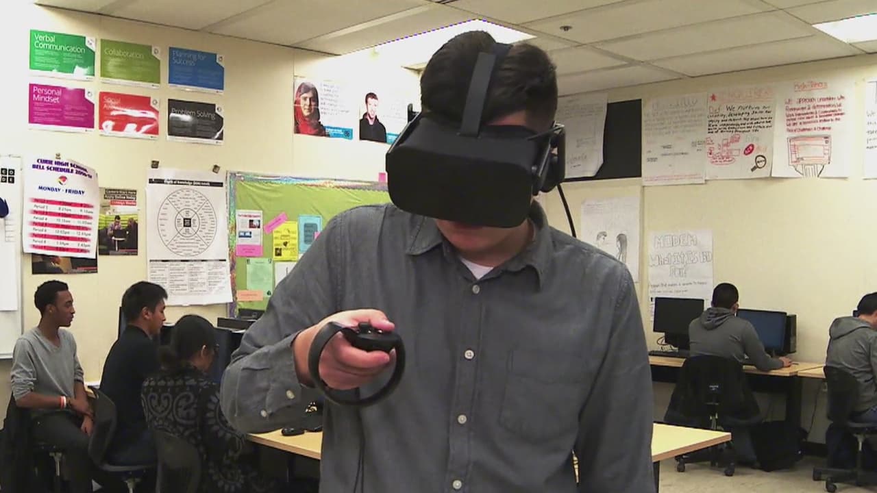 La escuela de secundaria Curie Metro está a la vanguardia en lo moderno y utiliza la realidad virtual como parte de su currículo para que los estudiantes aprendan de una manera divertida. En la clase de tecnología los estudiantes cuentan con unas gafas y controladores de mano para crear y ver contenido virtual.