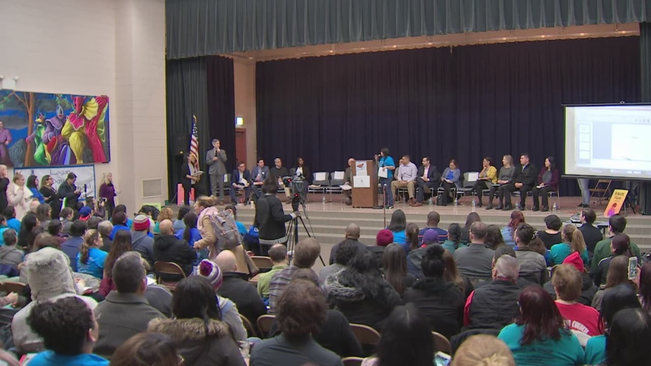 Representantes de la política de los distritos 1, 26, 30, 31 y 35 estuvieron presentes junto a más de 200 miembros de la comunidad de Chicago que presentaron un proyecto para mejorar la educación, el desarrollo económico, la vivienda, la salud y temas de inmigración.
