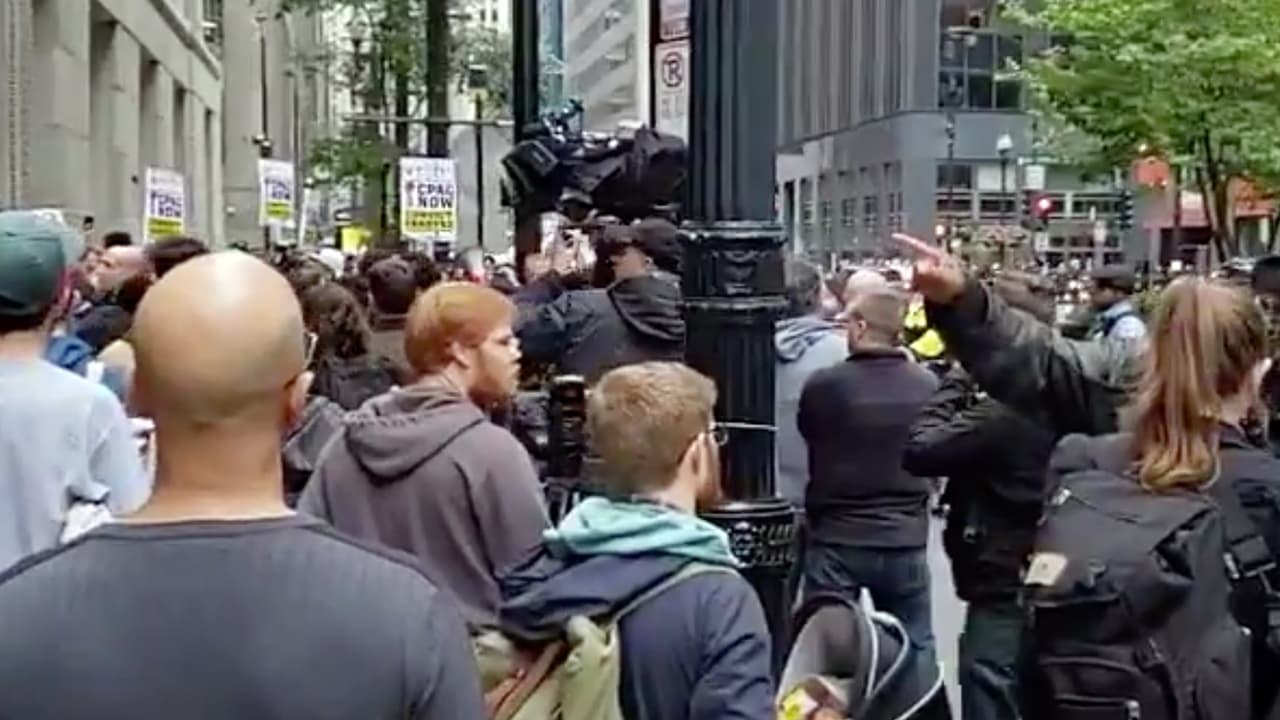 Realizan manifestación pacífica frente a la alcaldía de Chicago tras veredicto sobre el caso Van Dyke