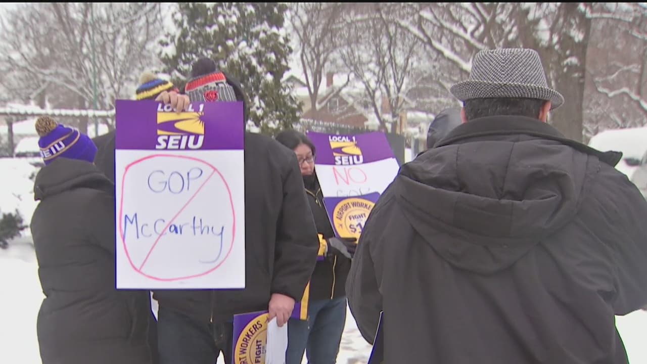 En medio de un evento de recaudación fondos, empleados de limpieza del aeropuerto O'Hare se manifestaron asegurando que temen que el ex superintendente de policía solo busque la renovación de un millonario contrato de servicios de aseo para la empresa de un amigo y socio comercial.