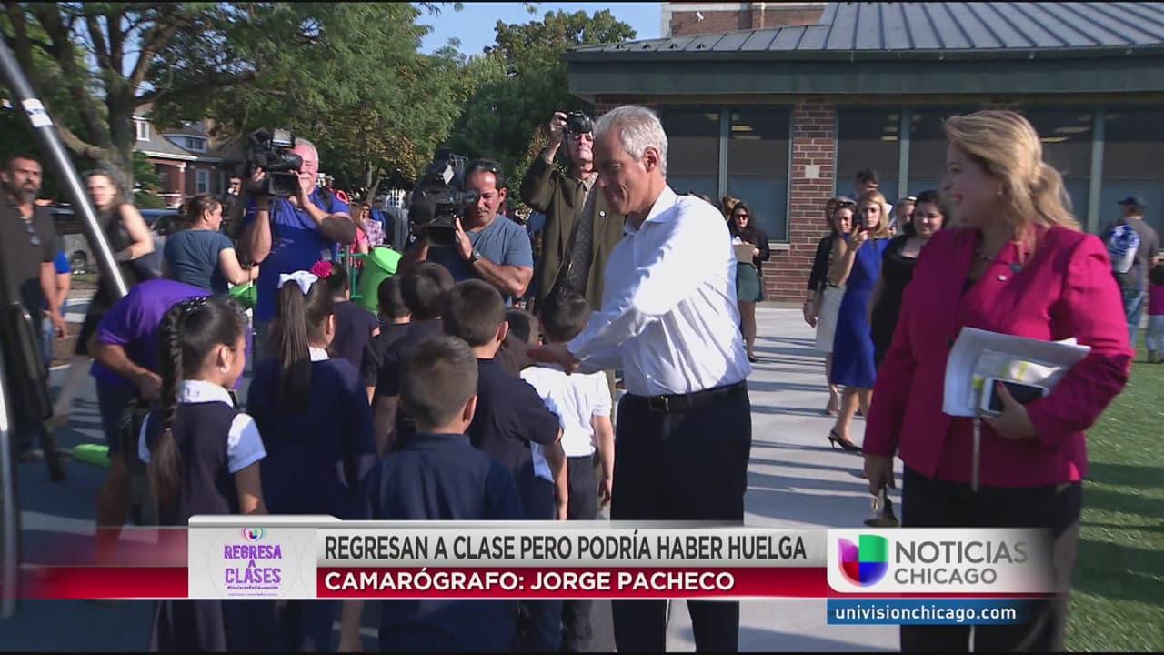 La negociación por el contrato de maestros no pareció restarle el entusiasmo al alcalde de Chicago, Rahm Manuel, quien se mostró muy optimista dando la campanada del primer día de clases.