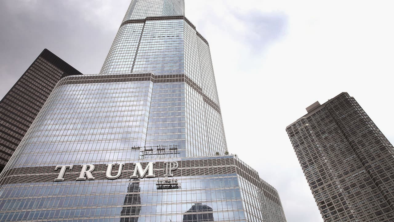 “Resiste” y “defiende” los mensajes de la bandera que guindaron en la torre Trump de Chicago