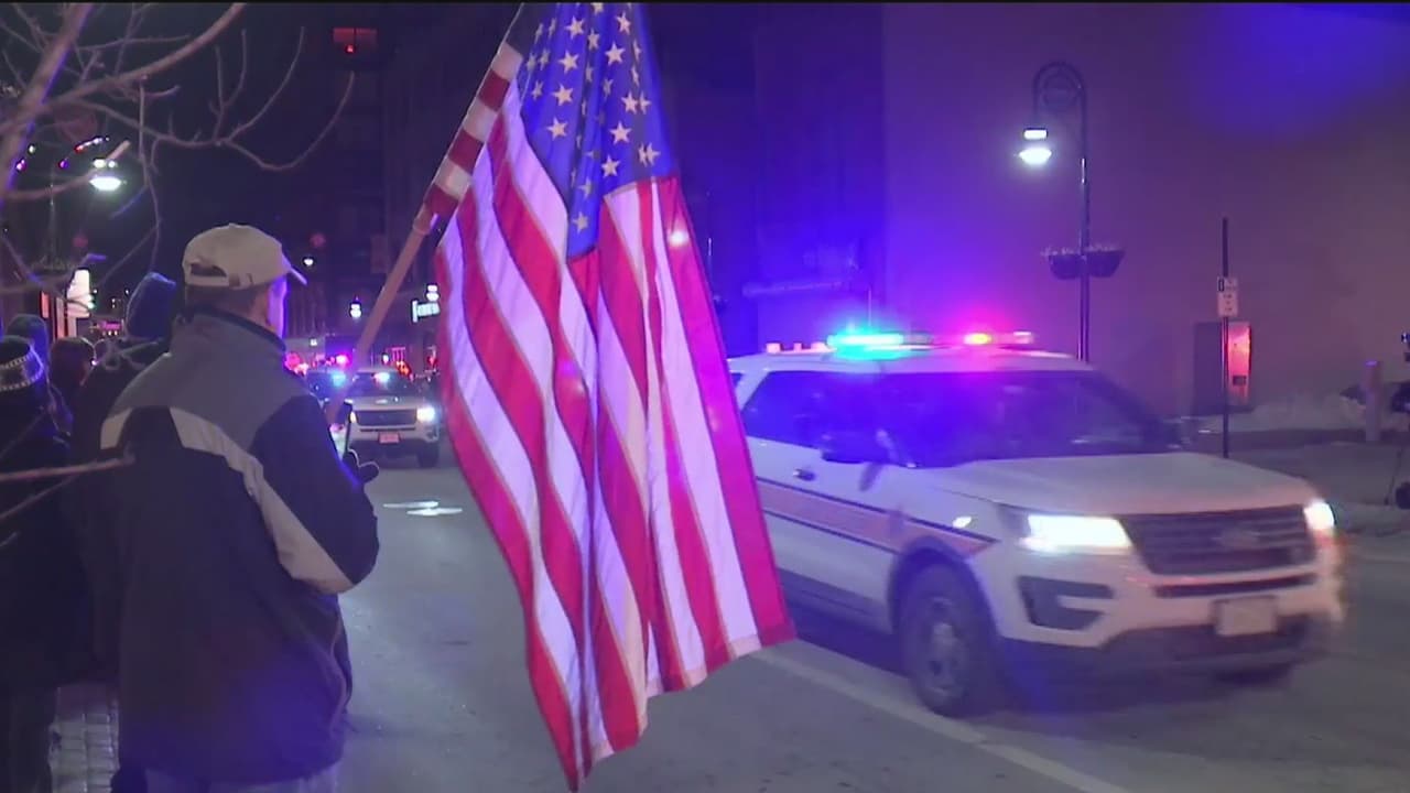 El policía recibió los impactos de bala mientras intentaba arrestar a un sujeto que se hospedaba en un hotel y que escapaba de las autoridades. Sus compañeros escoltaron el cadáver de la víctima desde el Hospital Mercy Health hasta la Oficina del Forense en el condado de Winnebago para honrarlo por su servicio.