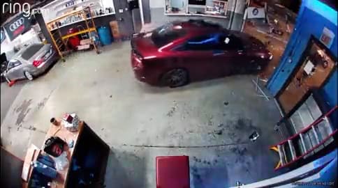 Al inicio se aprecia cómo dos de ellos registran el lugar, en búsqueda de abrir la puerta de la cochera, pero al no obtener resultados, otro sujeto enciende un vehículo, se echa en reversa y tira la puerta del negocio.