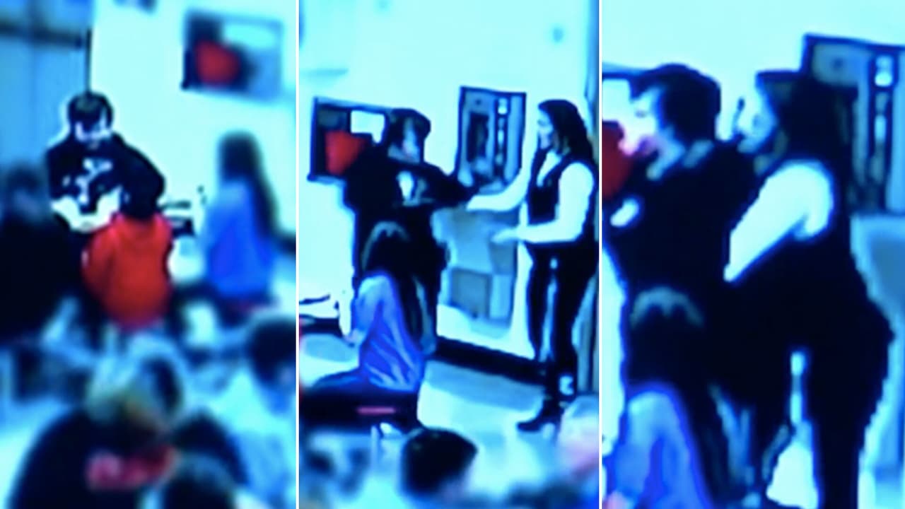 El angustiante momento quedó grabado por las cámaras de seguridad de la cafetería de la escuela.