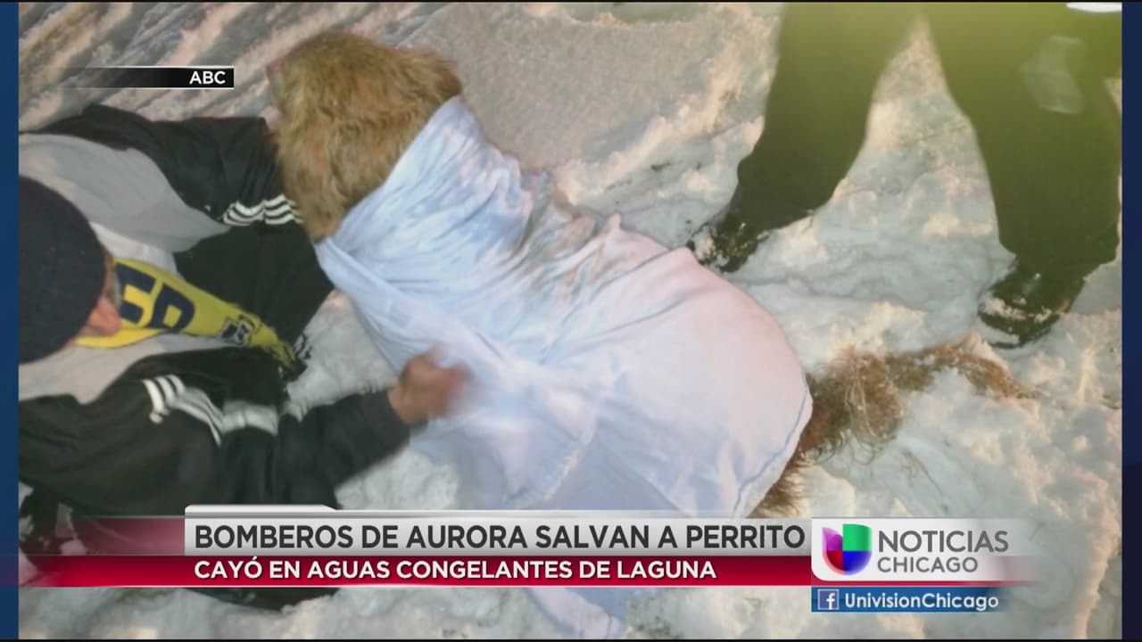 Salvan a perrito de congelarse en aguas heladas en Aurora