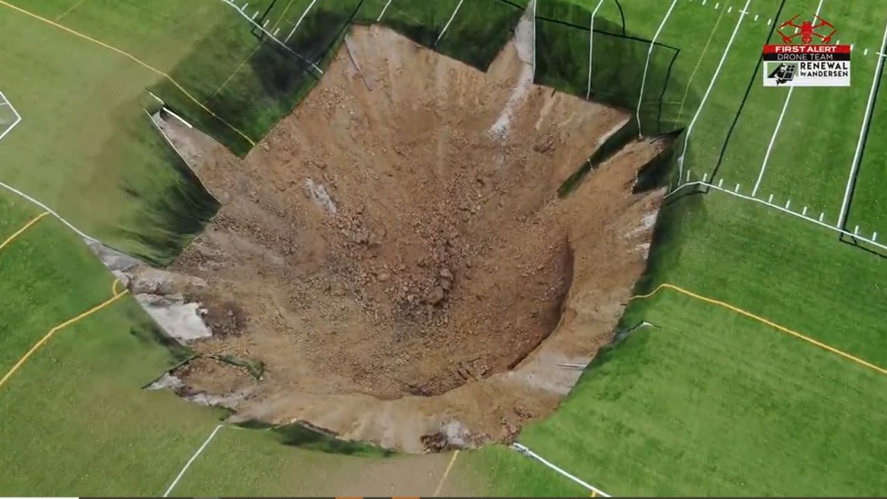 Se abre un enorme agujero en medio de un campo de fútbol en Illinois