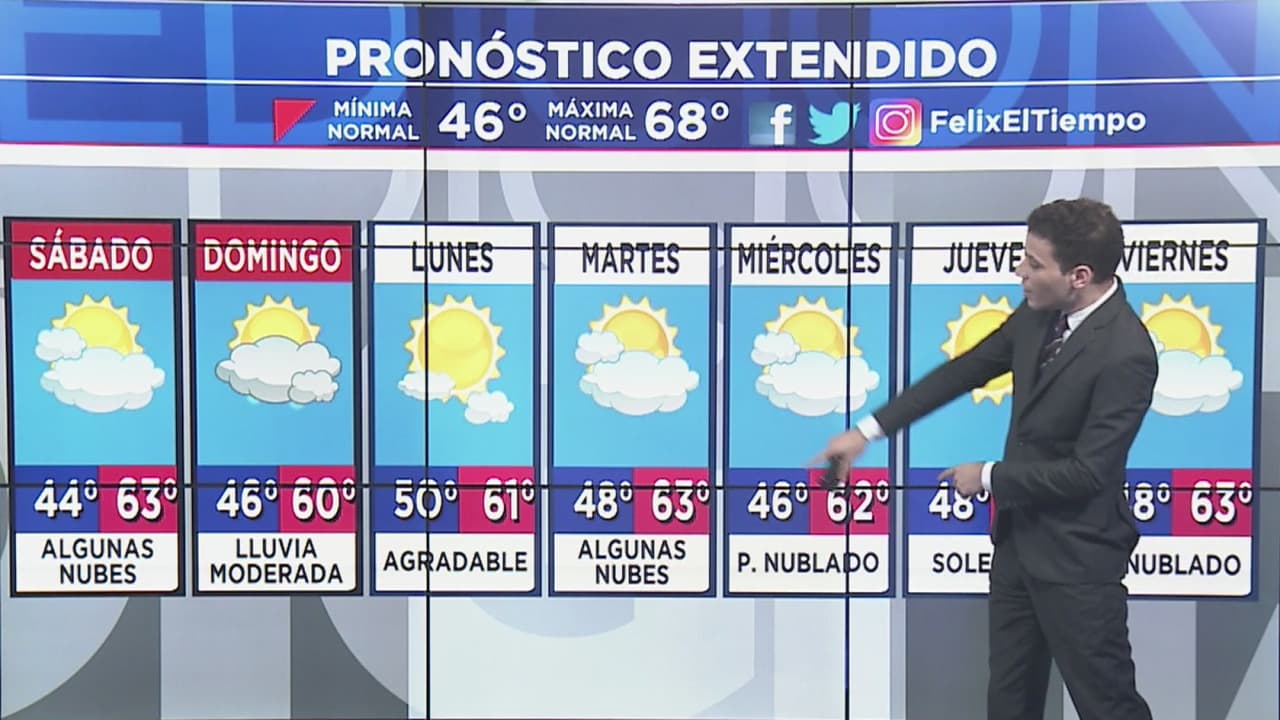 Los nublados empezarán a disiparse a partir de las 8:00 pm y hasta las 10:00 pm, mientras las temperaturas se situarán sobre los 50 grados Fahrenheit. El fin de semana se pronostican algunas precipitaciones en el área.