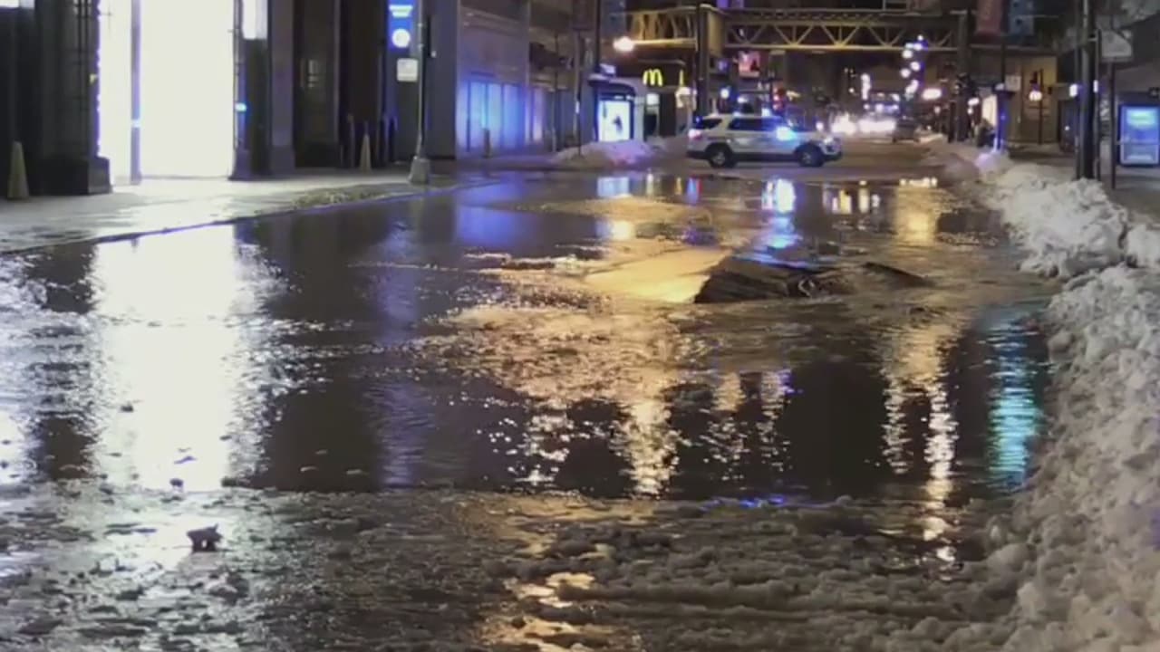 Se rompe una tubería de agua en el centro de Chicago y causa una inundación