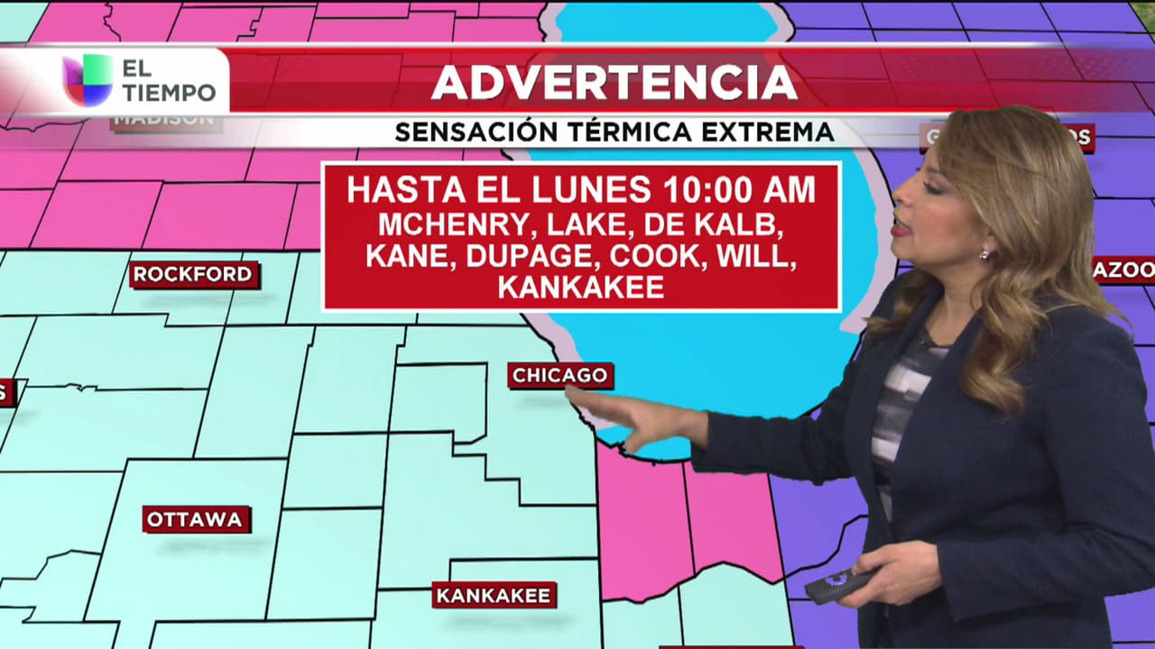 El pronóstico del tiempo con Ligia Granados muestra la advertencia de las autoridades sobre sensación térmica extrema durante el fin de semana anterior a Navidad. Las temperaturas extremas estarán en McHenry, Lake, De Kalb, Kane, Dupage, Cook, Will y Kankakee.