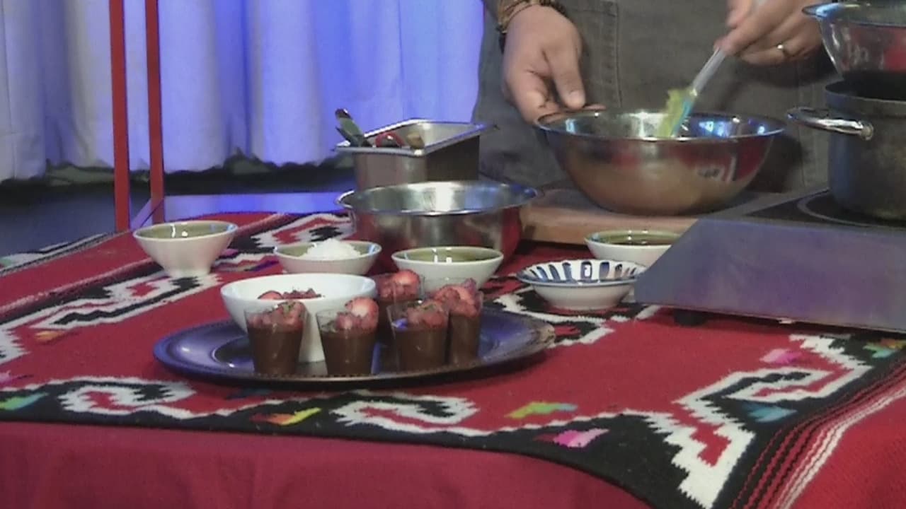 El chef Danny Espinoza te explica cómo hacer esta exquisita preparación utilizando estos ingredientes: media taza de chispas de chocolate, tres aguacates maduros, media taza de agave, media taza de cacao en polvo, media cucharada de extracto de vainilla, una pizca de sal de mar y frutos rojos frescos.