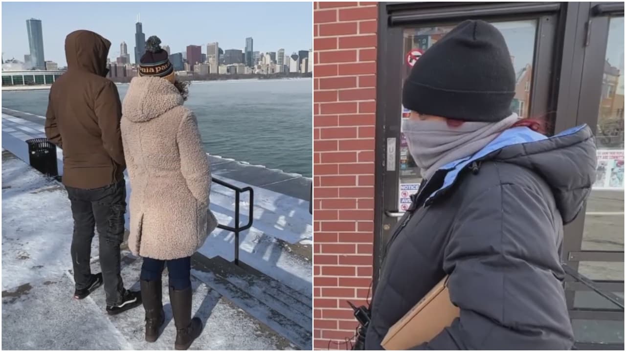 Soportan las temperaturas congelantes en Chicago: unos para contemplar el paisaje y otros por necesidad