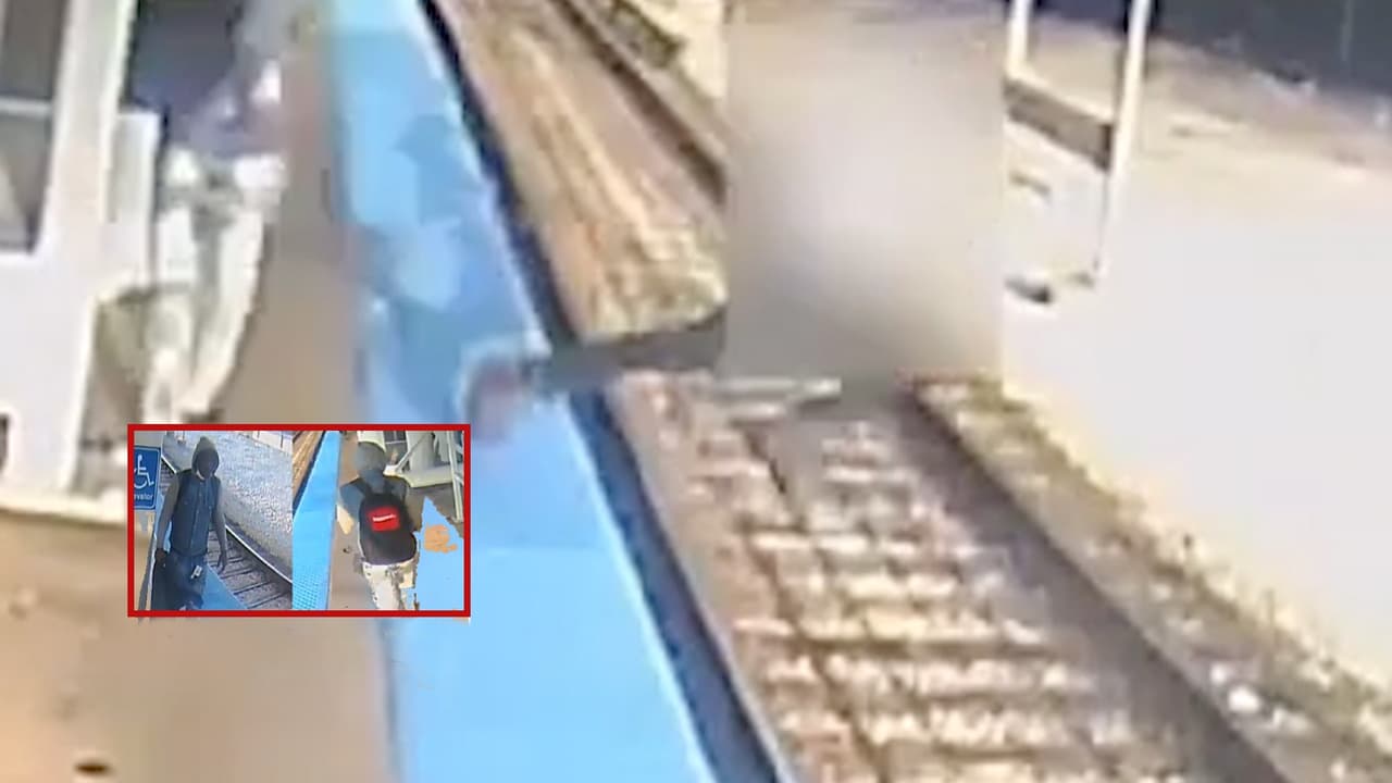 La víctima y el atacante caminaban sobre la plataforma, cuando de repente el sospechoso decidió empujar al otro hombre. El agresor sigue su camino mientras que la víctima trata de mantener el equilibrio y evitar la caída a los rieles, pero se le es imposible.