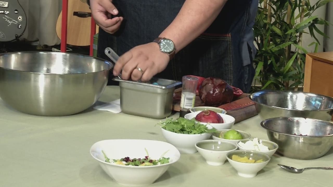 Nuestro chef Danny Espinoza presenta esta receta que es muy saludable y fácil de preparar. Para hacerla necesitarás dos betabeles rostizados, una granada, cuatro onzas de queso de cabra, cuatro onzas de berros, dos naranjas partidas en cuadros, un limón verde, una onza de aceite de oliva y sal y pimienta al gusto.