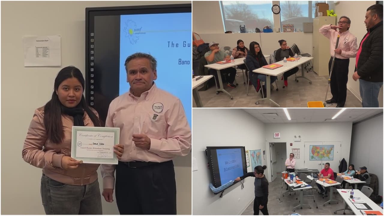 Migrantes que ya cuenten con su permiso de trabajo pueden participar de estas capacitaciones que se enfocan en darles entrenamiento para poder ocupar puestos de trabajo en hospitales y hoteles cumpliendo funciones de mantenimiento. Elio Montenegro, portavoz de UMF, asegura que con estas clases buscan ofrecerles oportunidades a los inmigrantes para vincularse al mundo laboral en Chicago.