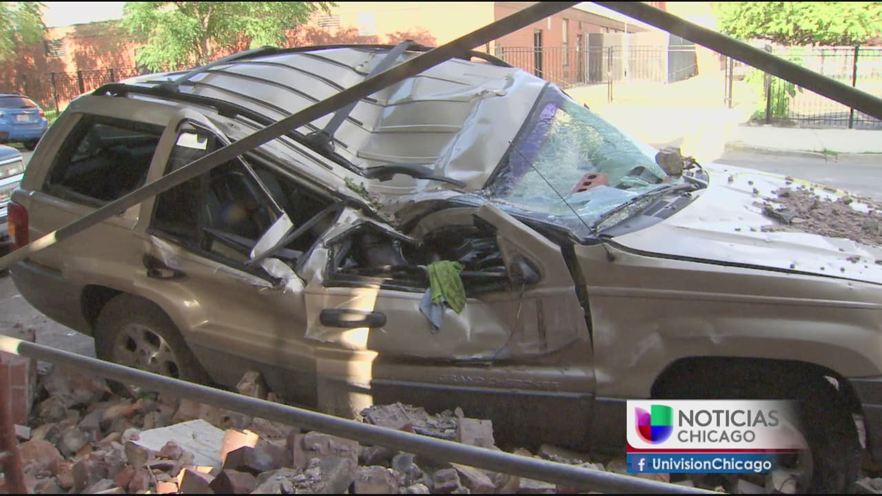 Las tormentas provocaron la destrucción de dos vehículos en el vecindario de Pilsen, los cuales fueron impactados por ladrillos que se desprendieron de un edificio.