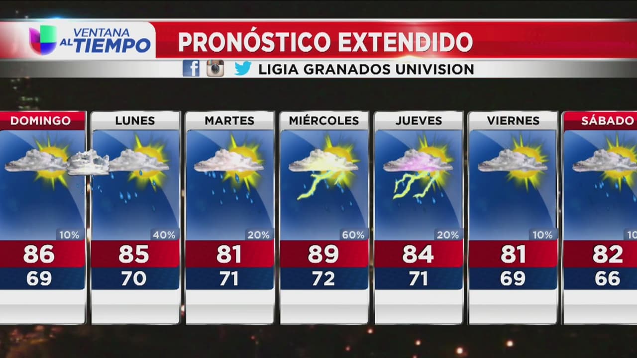 Suben las temperaturas y hay riesgo de tiempo severo. Hay probabilidades de tormentas en la noche del domingo. La temperatura máxima será de 86 grados.