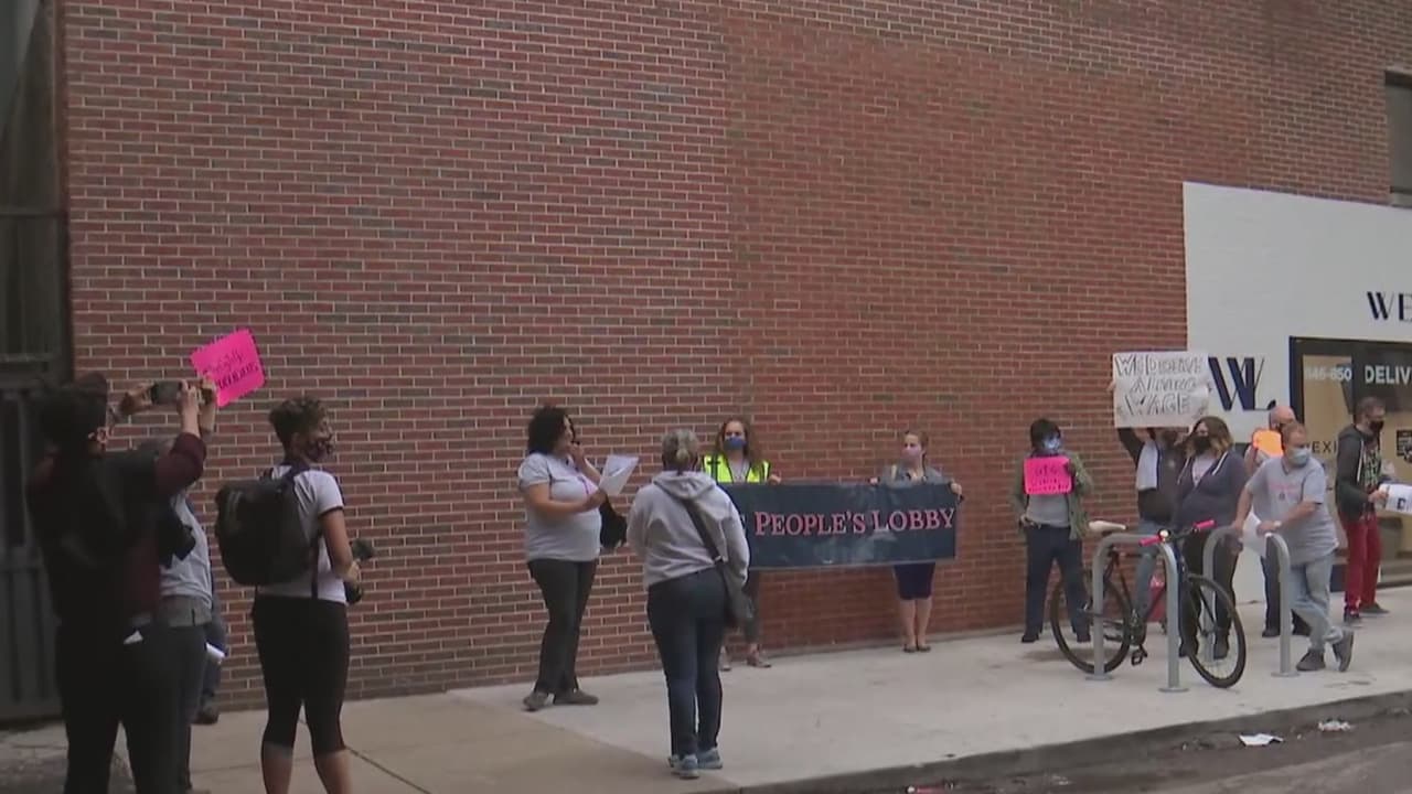 Los manifestantes piden que sus ingresos sean duplicados por el riesgo que corren con sus labores en medio de la pandemia. Organizadores comunitarios dicen que es justo que las compañías “les den lo que se merecen”.