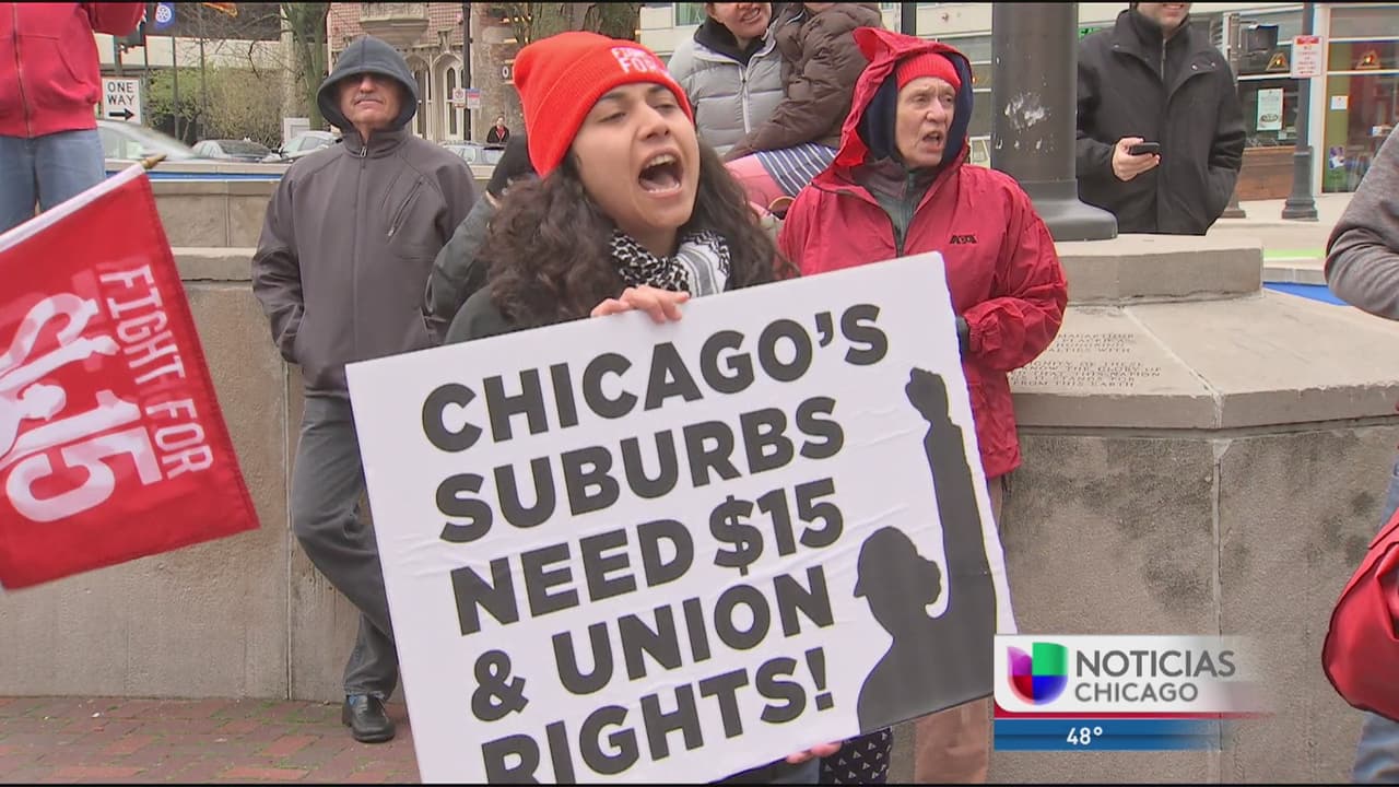 Trabajadores de Evanston salen a las calles a exigir el aumento de $15