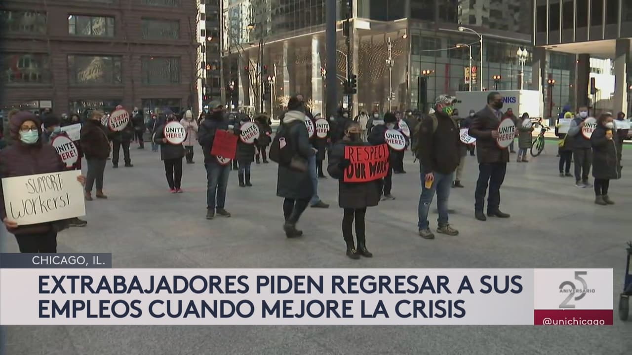 Trabajadores de la industria de la hospitalidad en Chicago exigen que les devuelvan sus empleos
