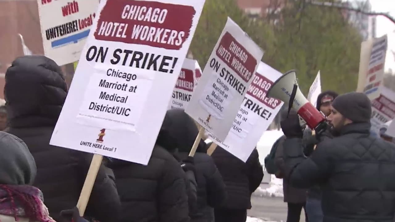Trabajadores del hotel Marriott en Chicago realizan una huelga simbólica