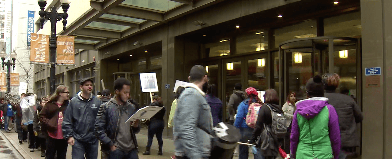 Trabajadores en los Colegios Comunitarios de Chicago inician huelga por falta de contrato y