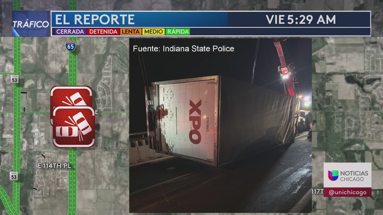 Ocurrió en el noroeste de Indiana. Autopista I-65 dirección norte entre 109th y 111th tráiler volteado. Autoridades tuvieron que cerrar por un momento, pero fue por solo minutos. Diego Guirado reporta