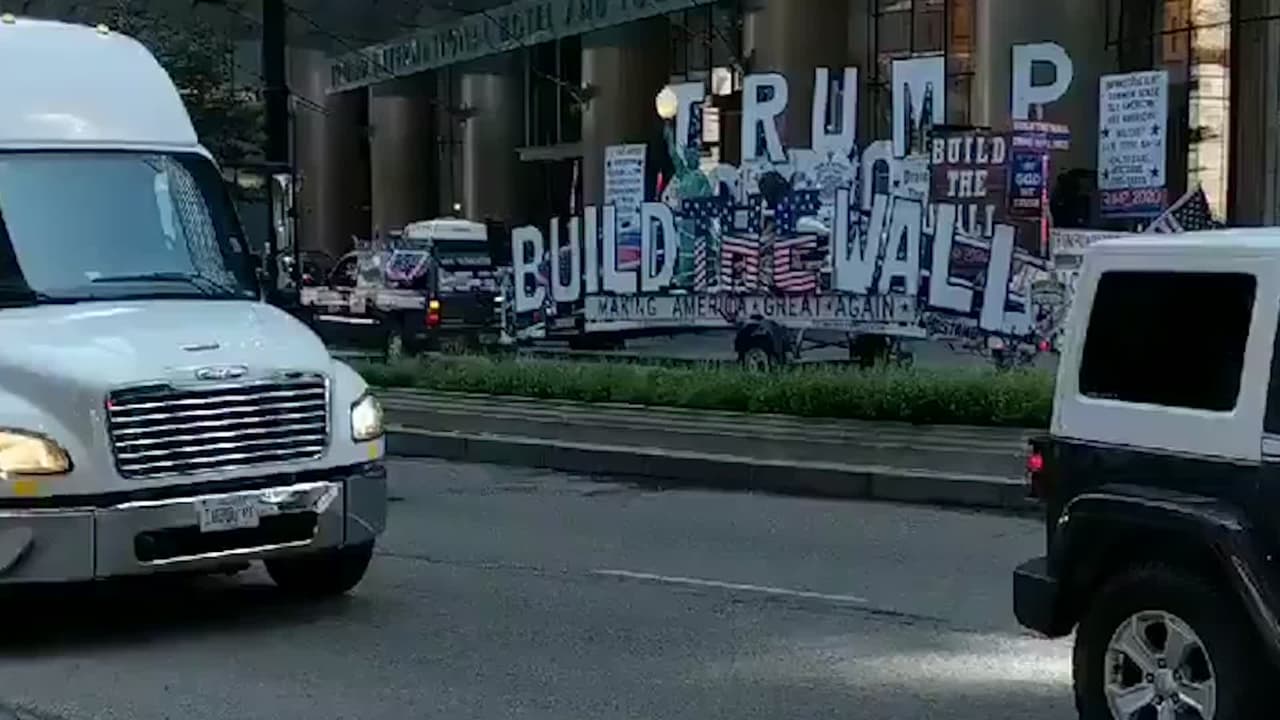 La carroza de desfile, 'Trump Mobile' fue vista por la avenida Michigan el miércoles por la tarde.
