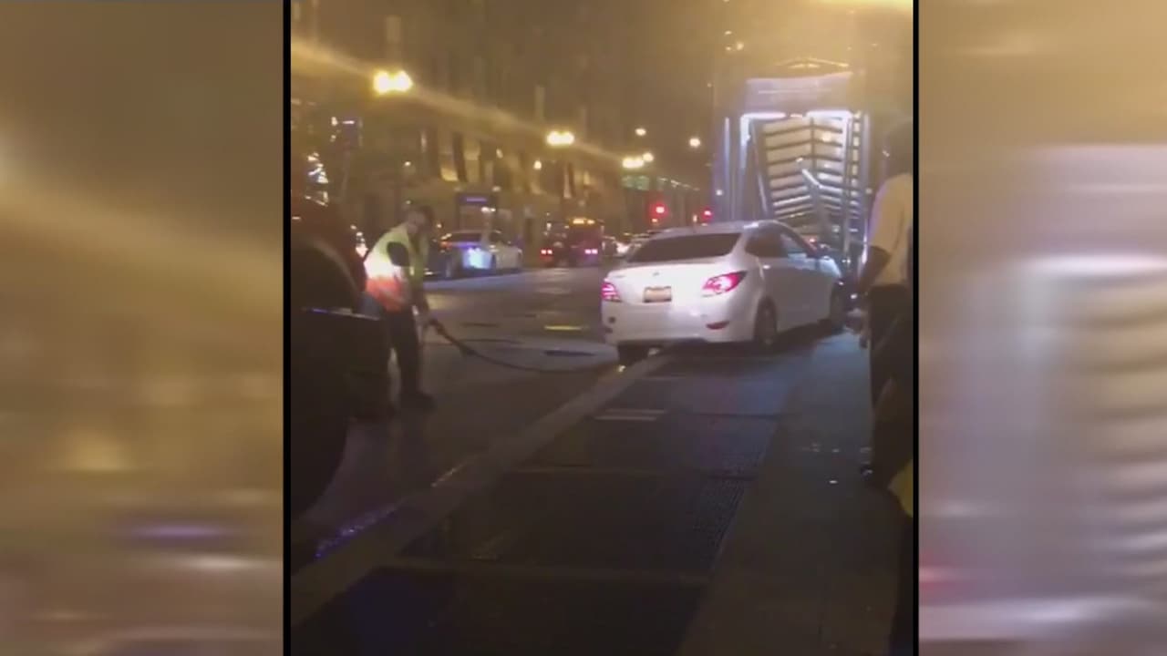 Un supuesto ladrón tomó un vehículo sin darse cuenta de que había dos pasajeros a bordo y terminó chocándose una cuadra después contra la entrada de una estación de la línea azul del tren de la CTA. El sospechoso escapó y ahora es buscado por las autoridades.