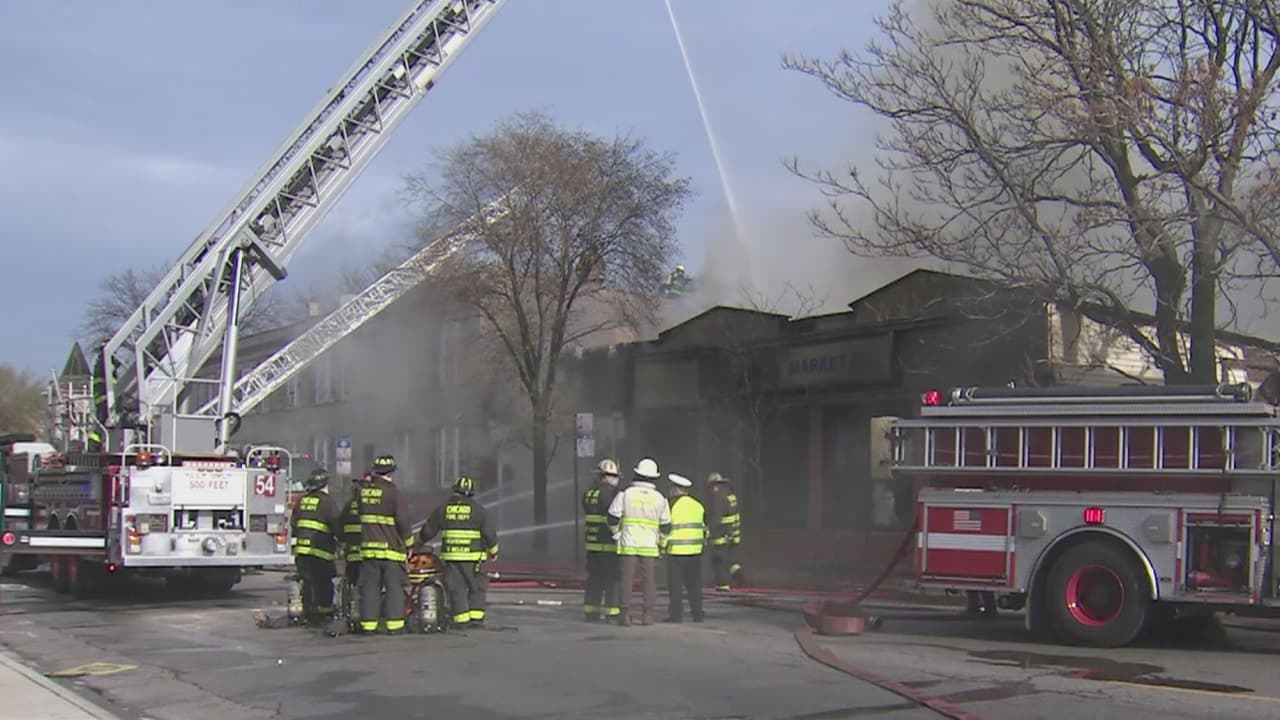 De acuerdo con los bomberos, la conflagración inició en un supermercado en el 3849 sur de la avenida Kedzie y terminó extendiéndose al edificio contiguo, un taller de soldaduras.