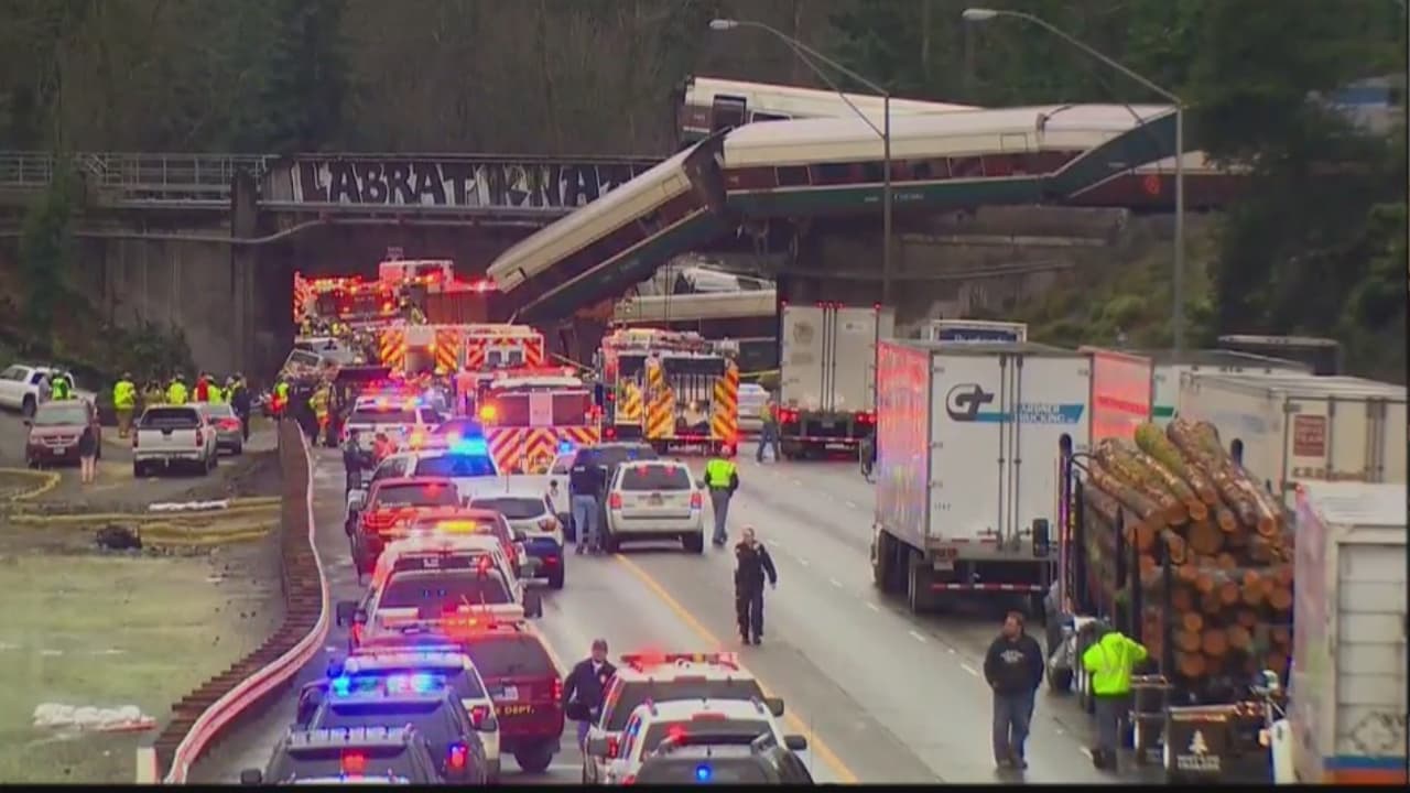 Un tren Amtrak se descarrila y cae sobre una autopista cerca de Seattle