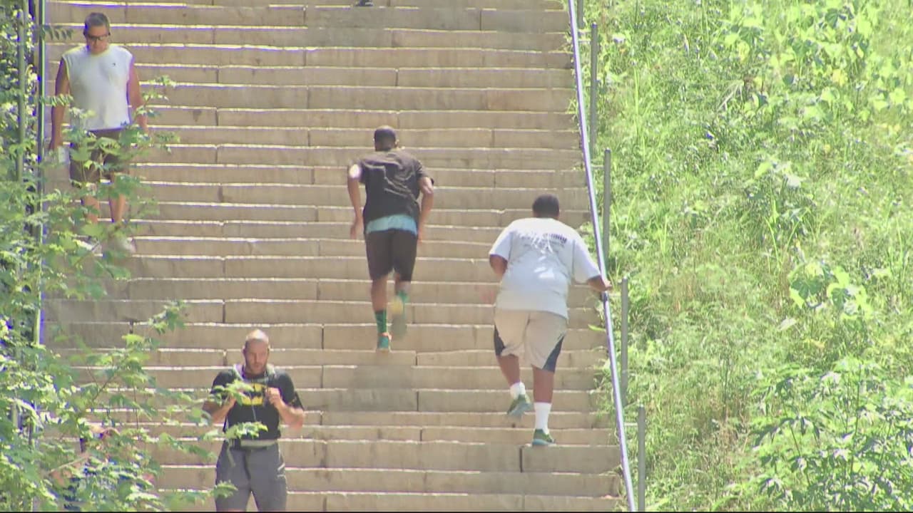 Las escaleras del Swallow Cliff le dan la oportunidad a muchos para una rutina de ejercicios muy particular.