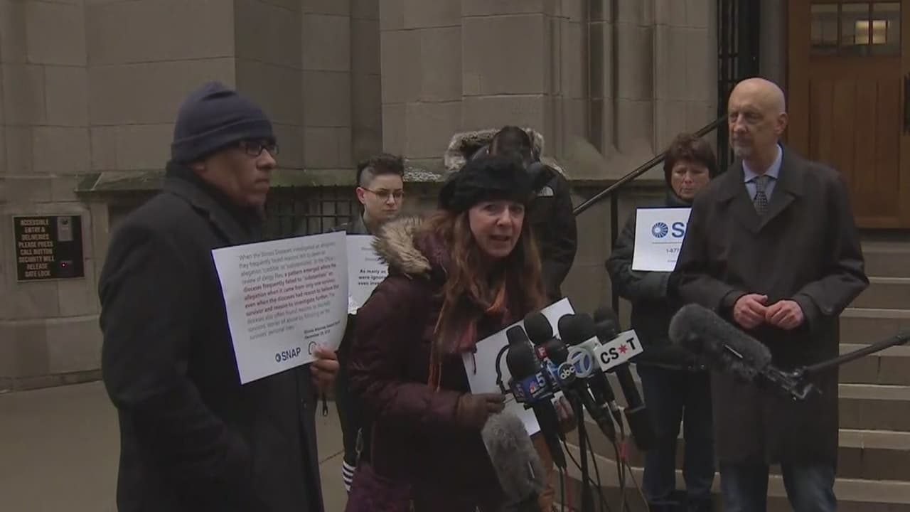 Víctimas de abuso sexual por parte de sacerdotes protestan por la reunión de obispos en Mundelein