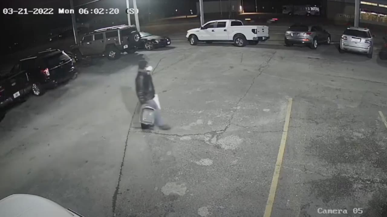 Las imágenes del video de seguridad del concesionario de autos muestran a un sospechoso entrando por la calle 167th St. Y Kedzie.