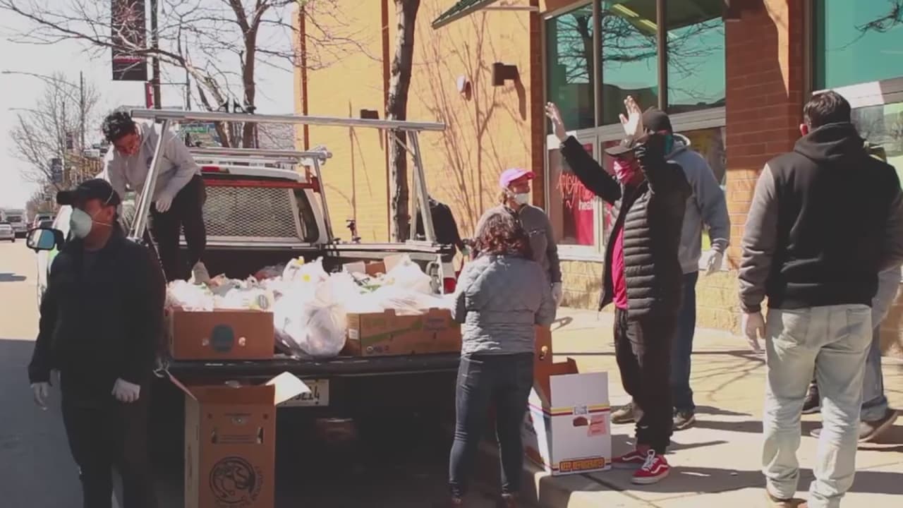 Voluntarios entregan comida a inmigrantes necesitados del vecindario de Las Empacadoras