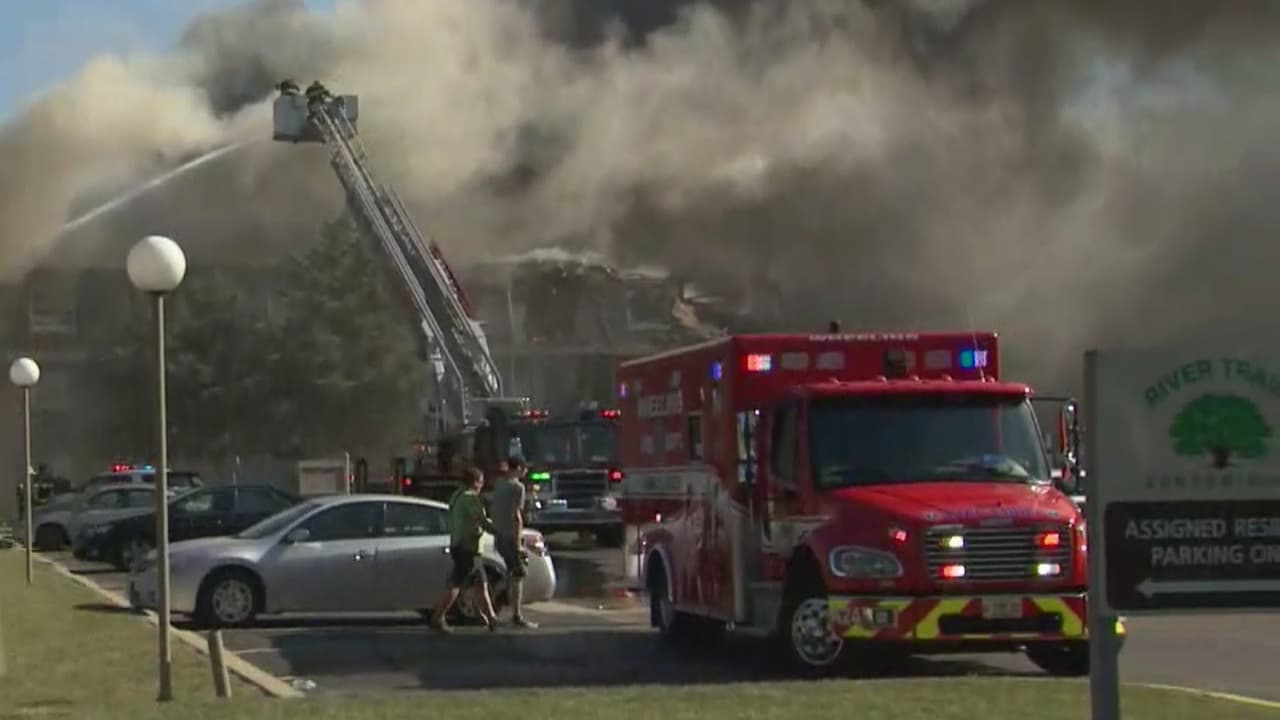 Voraz incendio deja a tres personas heridas y consume un complejo de apartamentos