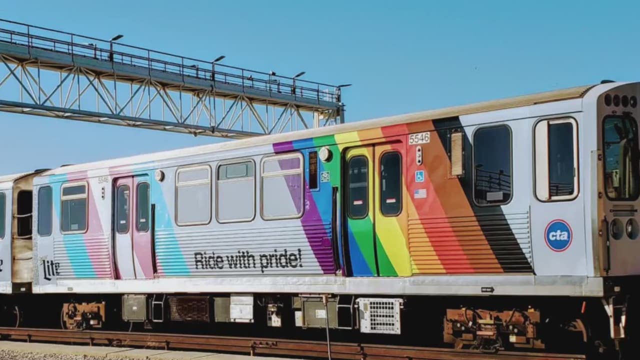 Se espera que este colorido diseño en un tren de la CTA, que celebra la diversidad e inclusión por las que apuesta la ciudad, se mantenga funcionando hasta el próximo otoño en la línea roja.