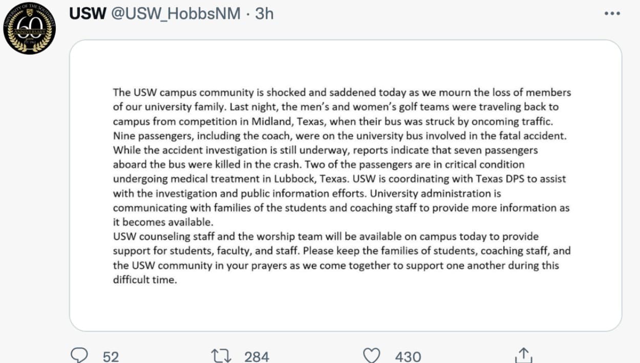 La Universidad de Southwest, ubicada en Nuevo México, dijo en su cuenta de Twitter que aún trabajan en notificar a los familiares de las personas involucradas en el accidente.