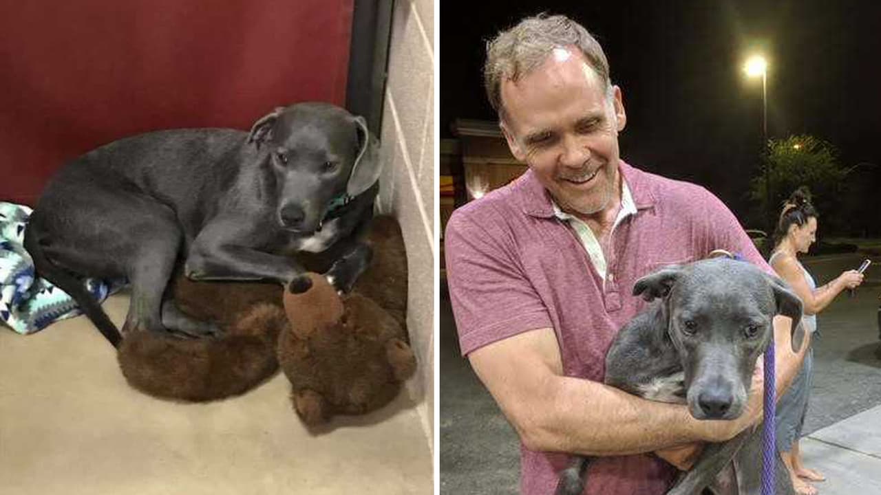 Abandonan a una perrita con un oso de peluche en un albergue en Texas