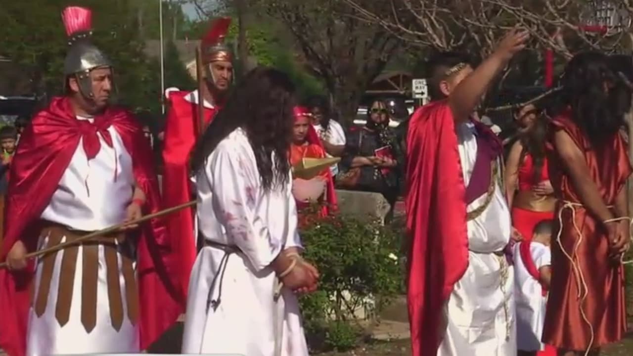 Cerca de 80 actores hispanos se prepararon durante 2 meses para participar del viacrusis y la procesión de del Viernes Santo en el este de Dallas. Fieles de la iglesia Saint Bernard y de otras partes de Dallas acudieron a la representación de este importante pasaje bíblico.