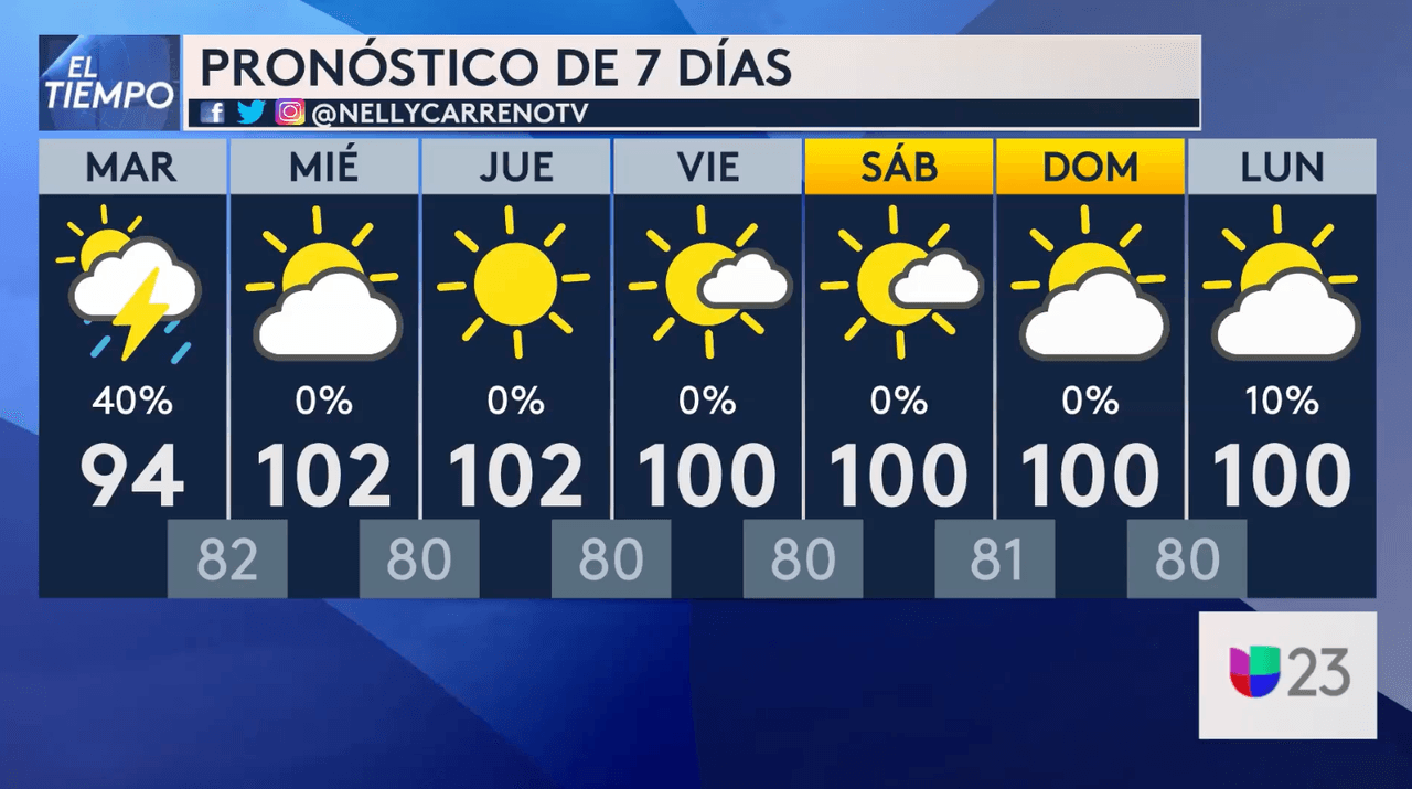 Emiten una advertencia por calor hasta el miércoles 12 de julio a las 8 de la noche. Afecta a Dallas – Fort Worth y prácticamente todo el norte de Texas. Nuestra meteoróloga Nelly Carreño nos comenta que el índice de calor puede estar entre los 105 y 112 grados, ¿cuál será el día más “caliente” de la semana?
