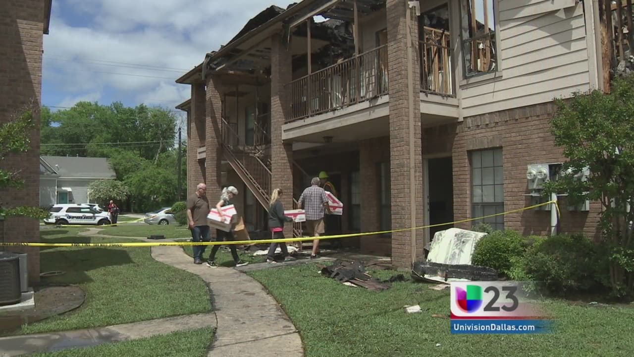 Presuntamente un rayo cayó sobre el complejo de viviendas de la Universidad de Mujeres de Texas y provocó un incendio.