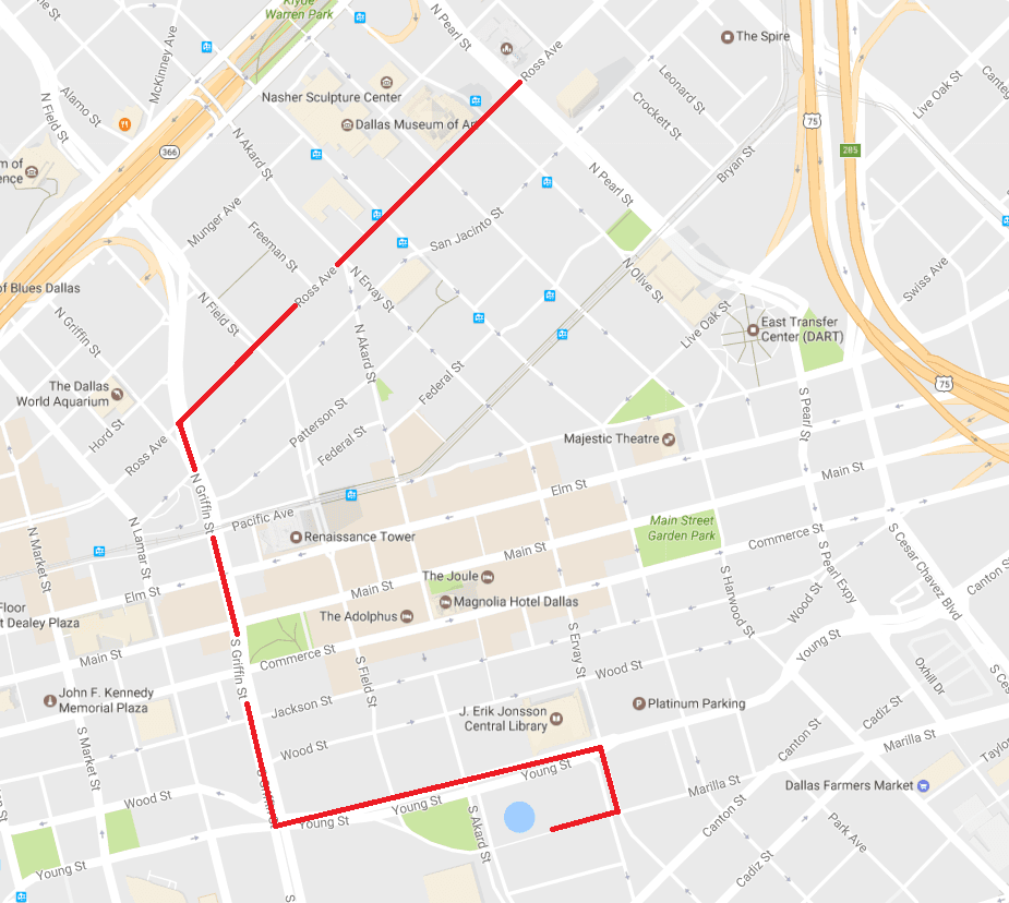 La Policía de Dallas notificó que las calles Ross Avenue, N. Griffin y Young Street permanecerán cerradas este domingo de la 1:00 p.m. a las 3:00 p.m. debido a la Megamarcha, por lo que instaron a la población a tomar medidas de precaución.