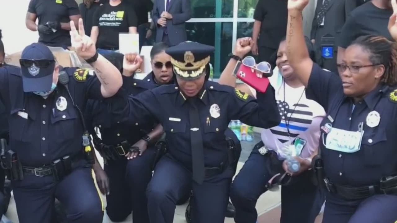 Así fue la emotiva movilización de la policía de Dallas en apoyo a la lucha contra el racismo