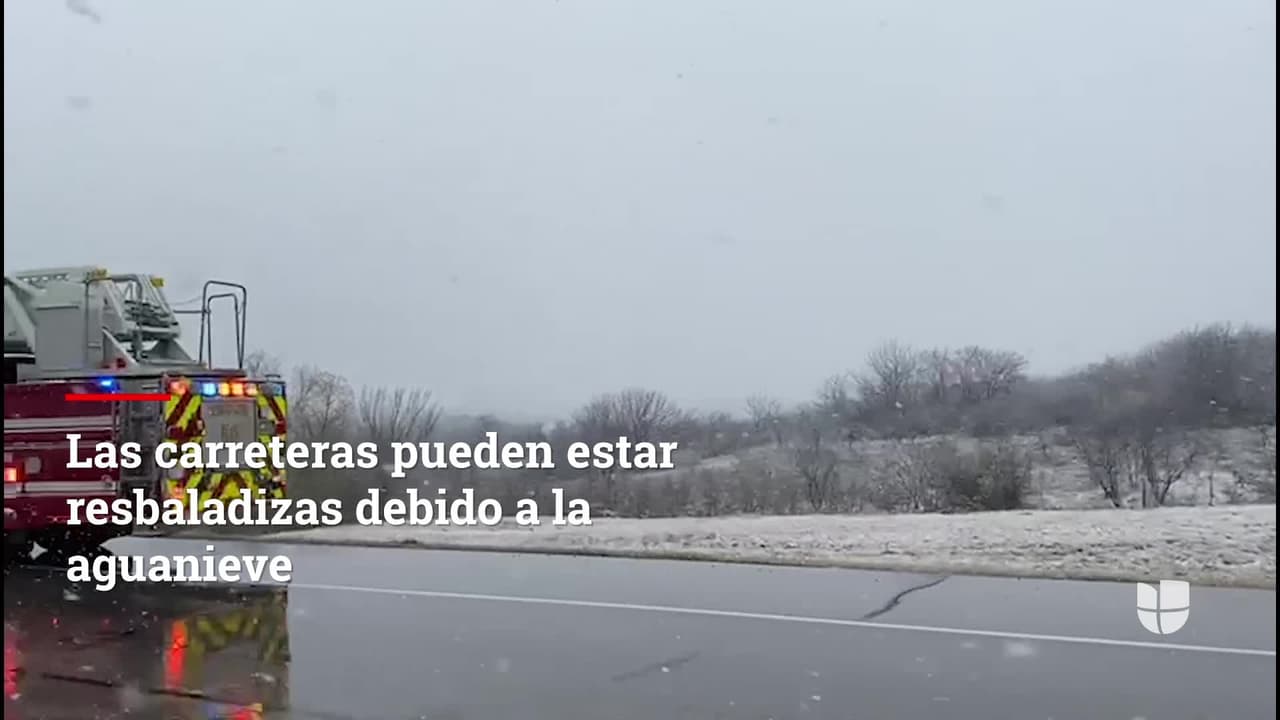 La nieve que ha caído en algunas áreas del Norte de Texas puede poner la superficie resbaladiza y ocasionar problemas viales.